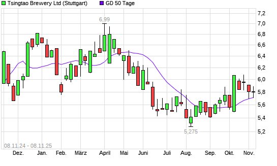 Mit dem Anstieg auf 5,77 EUR hat die Tsingtao Brewery-Aktie am 07.11.2025 die 50-Tage-Linie nach oben gekreuzt.