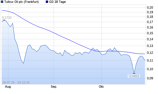 Mit dem Rücksetzer auf 0,11 EUR hat die Tullow Oil-Aktie am 28.10.2025 die 38-Tage-Linie nach unten gekreuzt.Die Tullow Oil-Aktie befindet sich seit dem 18.06.2025 im langfristigen Abwärtstrend ...weiterlesen