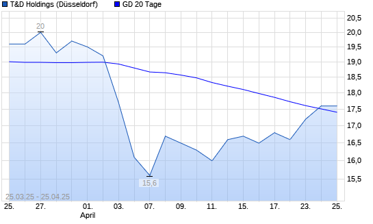Mit dem Anstieg auf 17,70 EUR hat die T&D Holdings-Aktie am 24.04.2025 die 20-Tage-Linie nach oben gekreuzt.