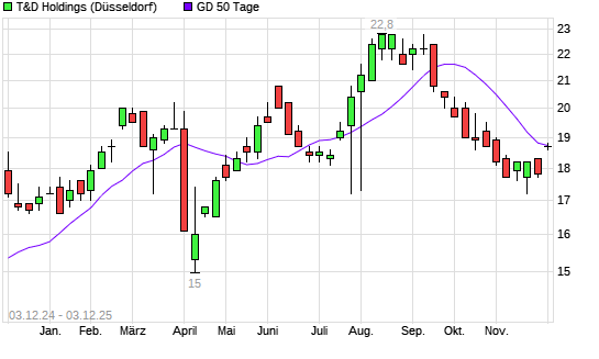 Mit dem Anstieg auf 18,90 EUR hat die T&D Holdings-Aktie am 02.12.2025 die 50-Tage-Linie nach oben gekreuzt.