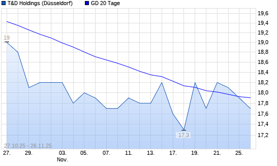 Mit dem Rücksetzer auf 17,70 EUR hat die T&D Holdings-Aktie am 25.11.2025 die 20-Tage-Linie nach unten gekreuzt.