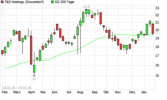 Mit dem Rücksetzer auf 19,70 EUR hat die T&D Holdings-Aktie am 23.01.2026 die 200-Tage-Linie nach unten gekreuzt.