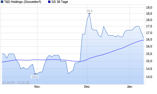 Mit dem Rücksetzer auf 16,70 EUR hat die T&D Holdings-Aktie am 10.01.2025 die 38-Tage-Linie nach unten gekreuzt.
