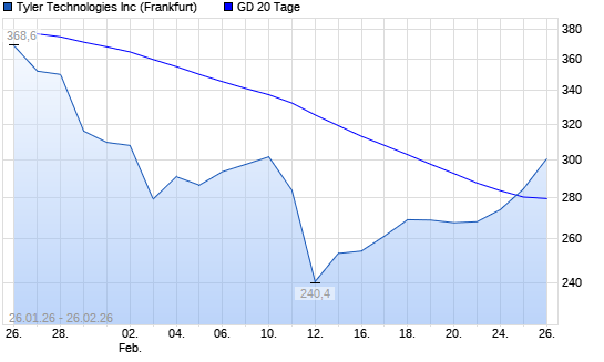 Mit dem Anstieg auf 284,30 EUR hat die Tyler Techs-Aktie am 25.02.2026 die 20-Tage-Linie nach oben gekreuzt.