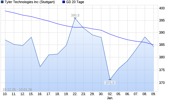 Mit dem Rücksetzer auf 384,90 EUR hat die Tyler Techs-Aktie am 09.01.2026 die 20-Tage-Linie nach unten gekreuzt.