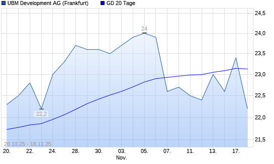 Mit dem Anstieg auf 23,40 EUR hat die UBM Development-Aktie am 17.11.2025 die 20-Tage-Linie nach oben gekreuzt.