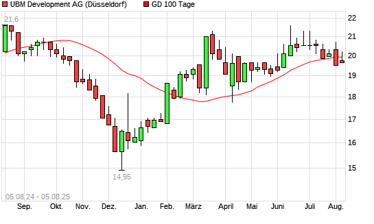 Mit dem Rücksetzer auf 19,75 EUR hat die UBM Development-Aktie am 04.08.2025 die 100-Tage-Linie nach unten gekreuzt.