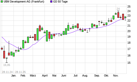 Mit dem Rücksetzer auf 22,00 EUR hat die UBM Development-Aktie am 27.11.2025 die 50-Tage-Linie nach unten gekreuzt.