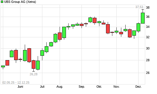 Mit dem Anstieg auf 36,23 EUR hat die UBS Group-Aktie (ISIN CH0244767585) am 11.12.2025 ein neues 10-Jahres-Hoch erreicht und damit den Kurs vom 19.09.2025 eingestellt.