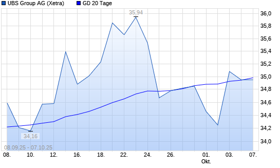 Mit dem Anstieg auf 35,00 EUR hat die UBS Group-Aktie am 06.10.2025 die 20-Tage-Linie nach oben gekreuzt.