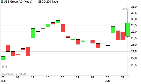 Mit dem Anstieg auf 29,88 EUR hat die UBS Group-Aktie am 06.06.2025 die 200-Tage-Linie nach oben gekreuzt.