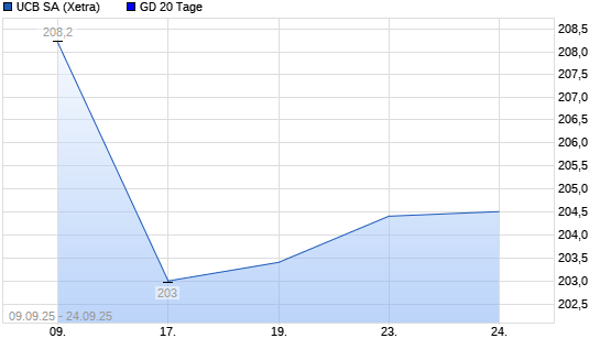 Mit dem Rücksetzer auf 203,80 EUR hat die UCB-Aktie am 24.09.2025 die 20-Tage-Linie nach unten gekreuzt.