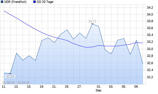 Mit dem Anstieg auf 33,25 EUR hat die UDR-Aktie am 09.09.2025 die 20-Tage-Linie nach oben gekreuzt.