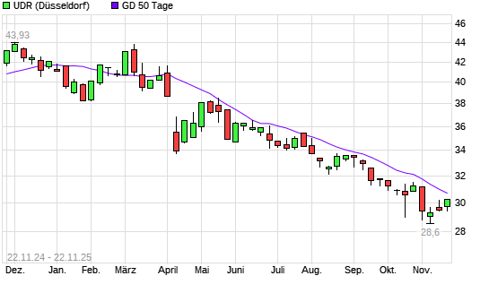 Mit dem Anstieg auf 30,83 EUR hat die UDR-Aktie am 21.11.2025 die 50-Tage-Linie nach oben gekreuzt.