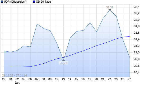 Mit dem Rücksetzer auf 31,12 EUR hat die UDR-Aktie am 26.01.2026 die 20-Tage-Linie nach unten gekreuzt.