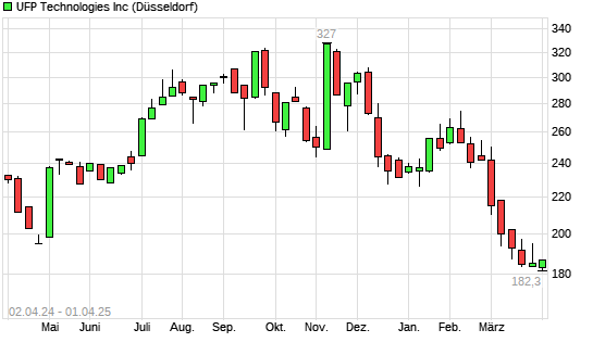 Mit dem Rücksetzer auf 182,70 EUR hat die UFP Technologies-Aktie (ISIN US9026731029) am 31.03.2025 ein neues 12-Monats-Tief erreicht und damit den Kurs vom 24.03.2025 eingestellt.