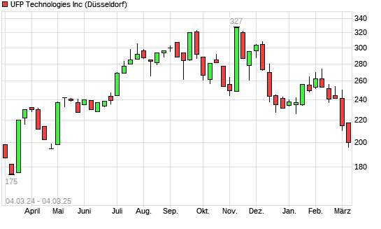 Mit dem Rücksetzer auf 217,80 EUR hat die UFP Technologies-Aktie (ISIN US9026731029) am 03.03.2025 ein neues 6-Monats-Tief erreicht und damit den Kurs vom 27.02.2025 eingestellt.