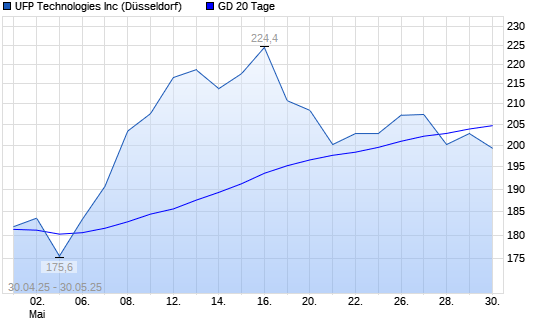 Mit dem Rücksetzer auf 204,00 EUR hat die UFP Technologies-Aktie am 29.05.2025 die 20-Tage-Linie nach unten gekreuzt.