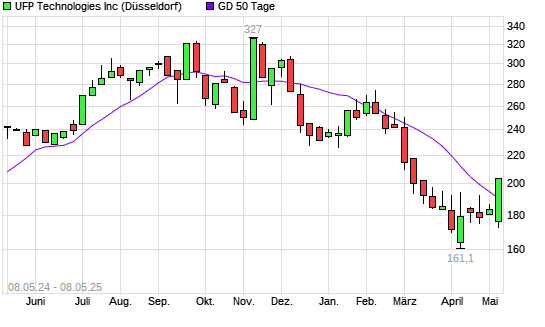 Mit dem Anstieg auf 192,30 EUR hat die UFP Technologies-Aktie am 07.05.2025 die 50-Tage-Linie nach oben gekreuzt.Die UFP Technologies-Aktie befindet sich seit dem 10.02.2025 im langfristigen ...weiterlesen