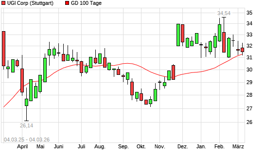 Mit dem Anstieg auf 31,87 EUR hat die UGI-Aktie am 03.03.2026 die 100-Tage-Linie nach oben gekreuzt.