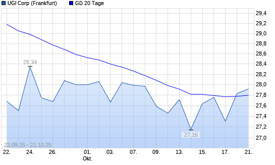 Mit dem Anstieg auf 27,83 EUR hat die UGI-Aktie am 20.10.2025 die 20-Tage-Linie nach oben gekreuzt.