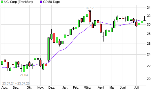Mit dem Anstieg auf 31,12 EUR hat die UGI-Aktie am 22.07.2025 die 50-Tage-Linie nach oben gekreuzt.