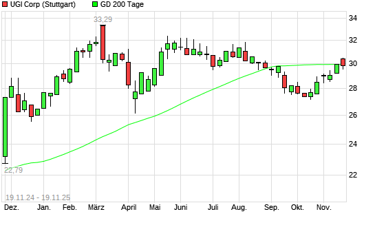 Die UGI-Aktie befand sich seit dem 17.11.2025 im langfristigen Aufwärtstrend und hat in diesem Zeitraum -0,08% an Wert verloren.