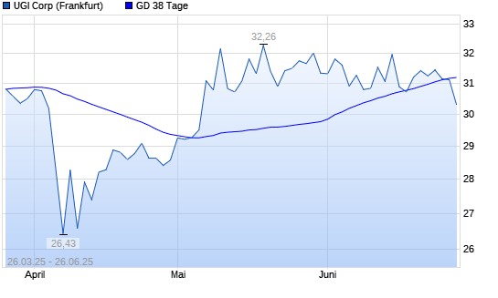 Mit dem Rücksetzer auf 31,11 EUR hat die UGI-Aktie am 25.06.2025 die 38-Tage-Linie nach unten gekreuzt.