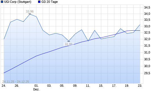 Mit dem Anstieg auf 33,09 EUR hat die UGI-Aktie am 23.12.2025 die 20-Tage-Linie nach oben gekreuzt.Die UGI-Aktie befindet sich seit dem 19.11.2025 im langfristigen Aufwärtstrend und hat in diesem ...weiterlesen
