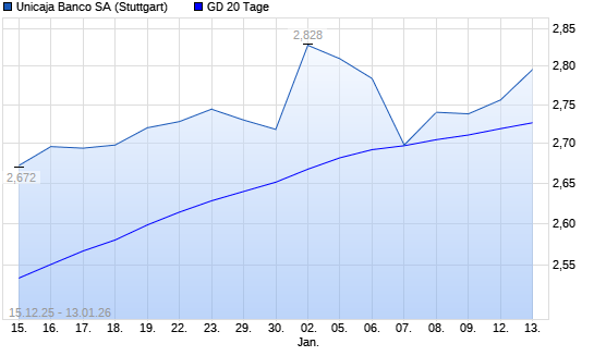 Mit dem Anstieg auf 2,74 EUR hat die UNICAJA BANCO SA-Aktie am 12.01.2026 die 20-Tage-Linie nach oben gekreuzt.