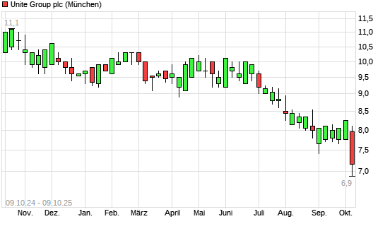 Mit dem Rücksetzer auf 7,25 EUR hat die UNITE GROUP-Aktie (ISIN GB0006928617) am 08.10.2025 ein neues 5-Jahres-Tief erreicht und damit den Kurs vom 02.09.2025 eingestellt.