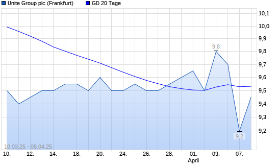 Mit dem Rücksetzer auf 9,20 hat die UNITE GROUP-Aktie am 07.04.2025 die 20-Tage-Linie nach unten gekreuzt.