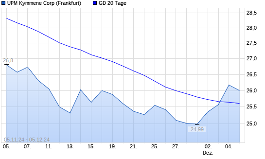 Mit dem Anstieg auf 26,17 EUR hat die UPM Kymmene-Aktie am 04.12.2024 die 20-Tage-Linie nach oben gekreuzt.