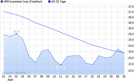Mit dem Anstieg auf 23,73 EUR hat die UPM Kymmene-Aktie am 28.04.2025 die 20-Tage-Linie nach oben gekreuzt.