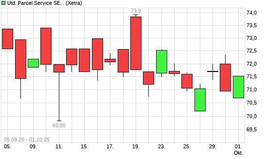 Mit dem Rücksetzer auf 70,69 EUR hat die UPS-Aktie (ISIN US9113121068) am 30.09.2025 ein neues 10-Jahres-Tief erreicht und damit den Kurs vom 25.09.2025 eingestellt.