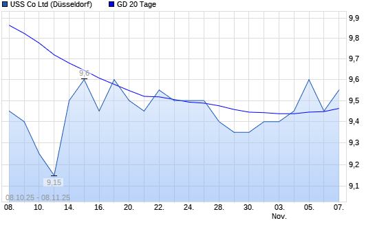Mit dem Anstieg auf 9,65 EUR hat die USS CO TOKAI-Aktie am 07.11.2025 die 20-Tage-Linie nach oben gekreuzt.