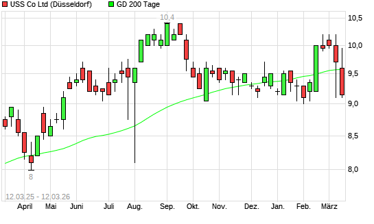 Mit dem Rücksetzer auf 9,60 EUR hat die USS CO TOKAI-Aktie am 11.03.2026 die 200-Tage-Linie nach unten gekreuzt.