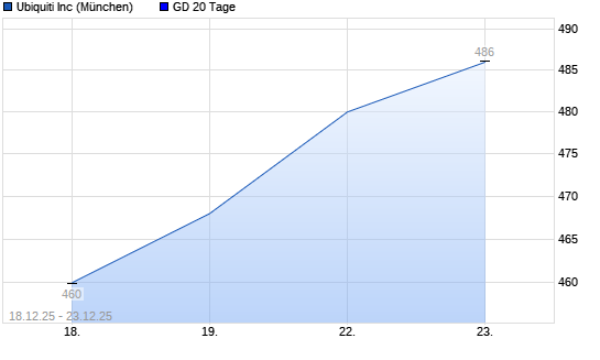 Mit dem Anstieg auf 491,40 EUR hat die Ubiquiti-Aktie am 22.12.2025 die 20-Tage-Linie nach oben gekreuzt.