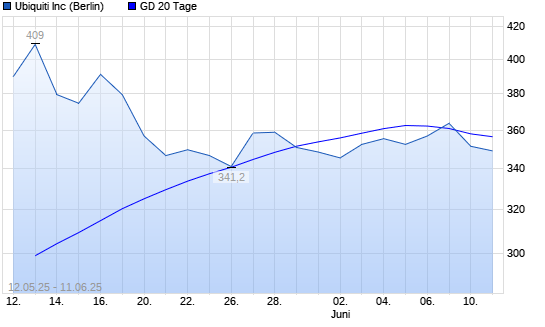 Mit dem Rücksetzer auf 351,60 EUR hat die Ubiquiti-Aktie am 10.06.2025 die 20-Tage-Linie nach unten gekreuzt.