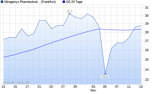 Mit dem Anstieg auf 28,60 EUR hat die Ultragenyx Pharmeutical-Aktie am 12.11.2025 die 20-Tage-Linie nach oben gekreuzt.