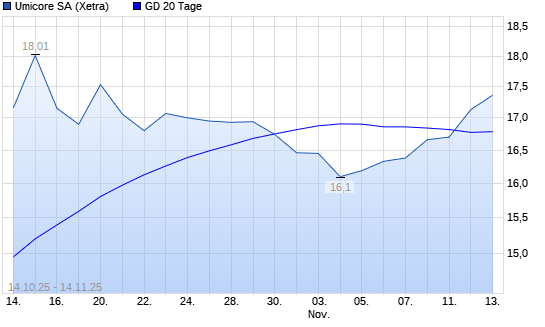 Mit dem Anstieg auf 17,28 EUR hat die Umicore-Aktie am 13.11.2025 die 20-Tage-Linie nach oben gekreuzt.