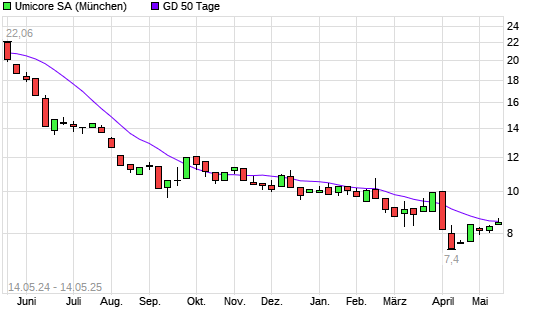 Mit dem Anstieg auf 8,53 EUR hat die Umicore-Aktie am 13.05.2025 die 50-Tage-Linie nach oben gekreuzt.