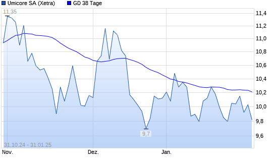 Mit dem Rücksetzer auf 9,90 EUR hat die Umicore-Aktie am 30.01.2025 die 38-Tage-Linie nach unten gekreuzt.