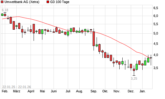 Mit dem Anstieg auf 3,84 EUR hat die Umweltbank-Aktie am 21.01.2026 die 100-Tage-Linie nach oben gekreuzt.