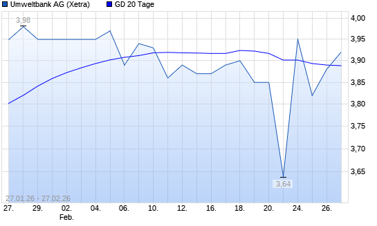Mit dem Anstieg auf 3,93 EUR hat die Umweltbank-Aktie am 26.02.2026 die 20-Tage-Linie nach oben gekreuzt.