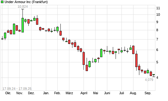 Mit dem Rücksetzer auf 4,08 EUR hat die Under Armour-Aktie (ISIN US9043111072) am 16.09.2025 ein neues 10-Jahres-Tief erreicht und damit den Kurs vom 12.09.2025 eingestellt.