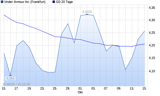 Mit dem Anstieg auf 4,22 EUR hat die Under Armour-Aktie am 14.10.2025 die 20-Tage-Linie nach oben gekreuzt.