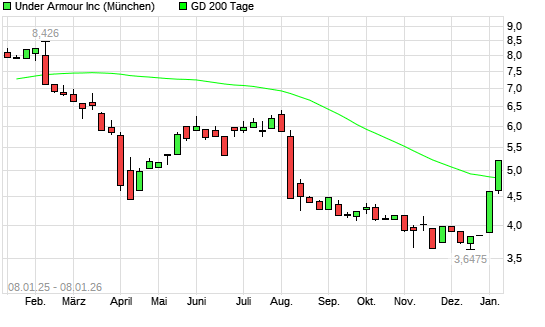 Mit dem Anstieg auf 4,92 EUR hat die Under Armour-Aktie am 07.01.2026 die 200-Tage-Linie nach oben gekreuzt.