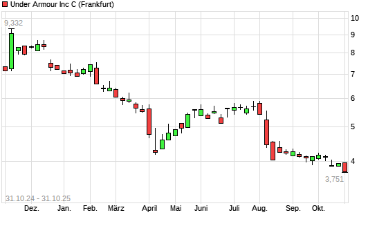Mit dem Rücksetzer auf 3,78 EUR hat die Under Armour C-Aktie (ISIN US9043112062) am 30.10.2025 ein neues All-Time-Low erreicht und damit den Kurs vom 29.10.2025 eingestellt.