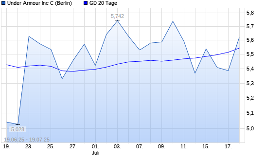 Mit dem Anstieg auf 5,61 EUR hat die Under Armour C-Aktie am 18.07.2025 die 20-Tage-Linie nach oben gekreuzt.